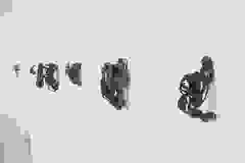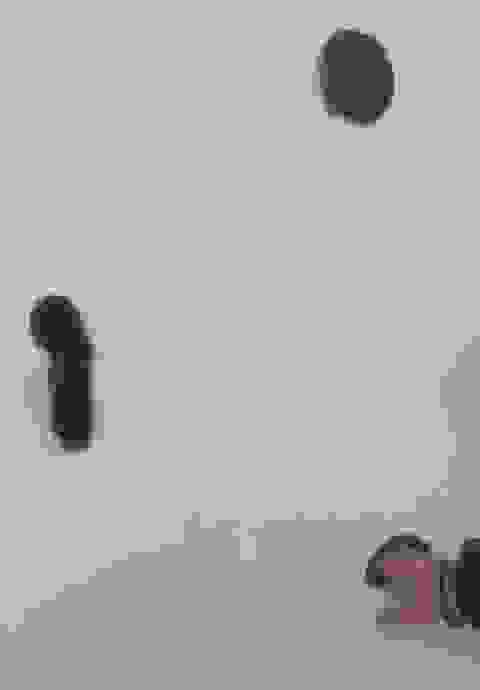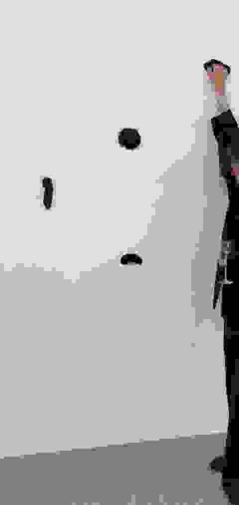 The starting point for the four-part work “Koordinaten” lies in the images and atmospheres that the word “Mulde” (depression, hollow) evokes in me. A “Mulde” is a soft indentation, a perceptible recess, a notch, an inward movement, a descent, a negative space – the interior of the mouth where language becomes body, the vault of the back of the skull, darkness. I shaped hollows in wax into the palms of my hands. They are hand-sized, Maria-scale. They were cast in bronze using the lost-wax method, blackened with acid and fire, and coated with a thin layer of wax. In the exhibition space, the objects are embedded in the wall, leaving only the openings visible. The wall replaces the negative space of my hand. The openings are arranged in relation to my body: starting at the center of the forehead, then clockwise, reaching upward with the right hand, then down to the navel, and finally, with the left hand at chest height, pressing thumb to index or middle finger. Visitors are invited to repeat this gesture, placing their hands in the hollows and feeling the surfaces with their fingers. Over time, the black patina will wear off at the points of contact.