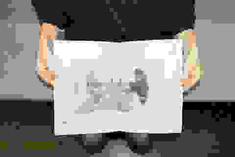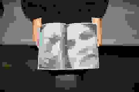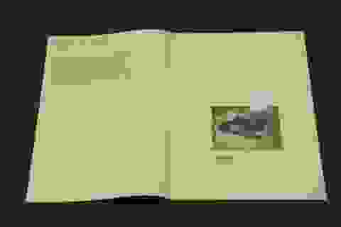 Assembled during a train ride from the Venice Biennale Preview to Munich: 8.50 am ES 9712 Santa Lucia – 11.02 am EC 80 Verona Porta Nuova – 4.26 pm München Hbf. Printed in a local printshop, released the same day on the occasion of our debutant exhibition after graduation entitled "Preview", a vague projection of future forms. With contributions by fellow art students Jan Erbelding, Elke Dreier, Natalie Brück, Byron Kalomamas. On the other wall there is a tiled rectangle / in front of it a wooden board with a booklet on it the title Preview / a black stain in the middle of the cover / a blind spot / fade in / fade out / the publication / gave space to four people / BK ED JE NB / 4 visions / 4 projections / 4 previews / light grey on light grey / apparitional / soft / the future effect