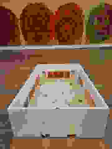 Studio, 2025, cardboard, tape, iron rods, plastic lid, magnetized needle, approx. 4 1/4 × 3 ½ × 2 ½ in.