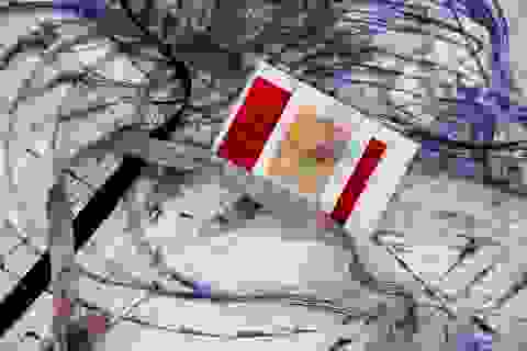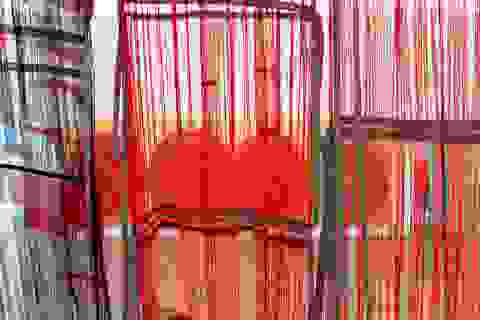 Untitled [Sappho], 2021, red ink stamped on silk paper, stamp size: 8 x 9.4 inches