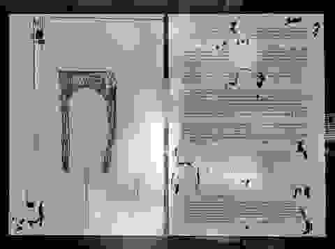 Artist book/painting, India ink, pigment, crayon, pencil, iron mica, acrylic, and scratching on paper