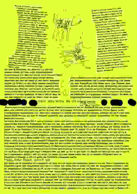 52 p., copies of the original sheets from the installative publication of the same title, bw xerox on light green copy paper, stapled, 21 x 29.7 cm, 1st printrun of 18, each further print run is a copy of the one before, over time distorting more and more the graphics