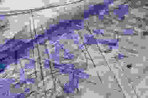The paper fills the whole studio floor, 17 × 18 feet. There is no outside, no walking around it. I walk backwards and step into a bowl of ink, it splashes, I continue walking through the picture with wet, blue socks. I have to stop for today.