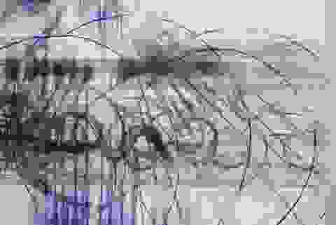 Handabzug [7/8], 2024, fineliner and Xerox on paper, wax, pigment, 25 × 21,5 cm