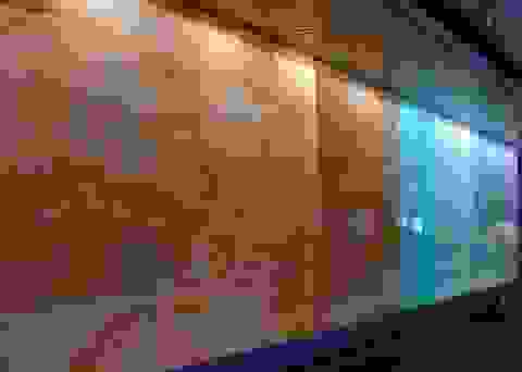 We are now behind the image, looking at its reverse. We are in a space that is usually inaccessible. Lights out. Shapes are barely discernible through the paper and the transparent screen of the display, wedged beneath the gallery ceiling.