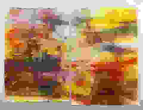 Summer 2024, Bard College, Upstate New York, humid summer heat. I rotated the painting 180° and added a fourth sheet.