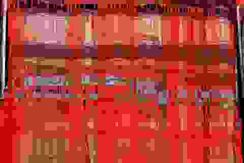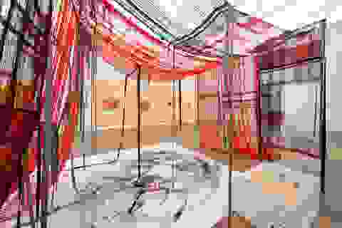 Untitled [Sappho], 2021, red ink stamped on silk paper, stamp size: 8 x 9.4 inches