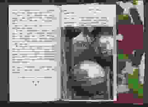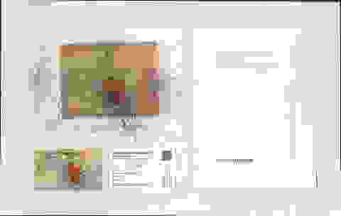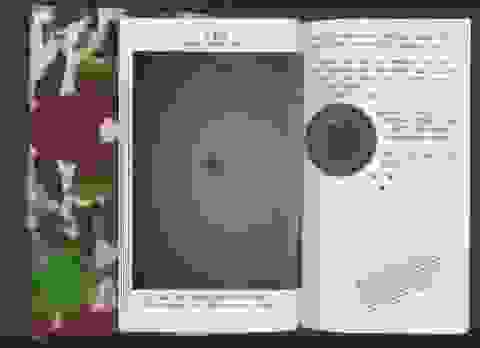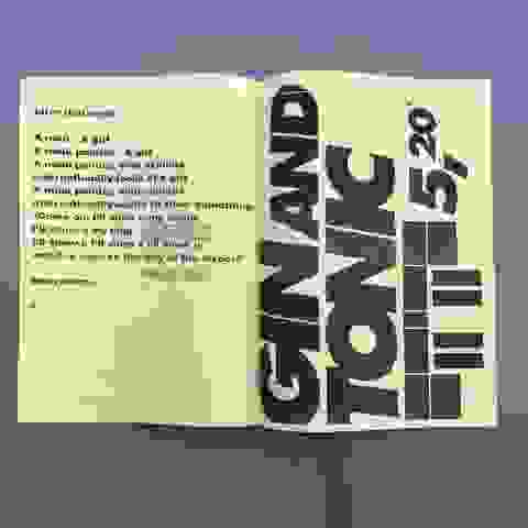 Assembled during a train ride from the Venice Biennale Preview to Munich: 8.50 am ES 9712 Santa Lucia – 11.02 am EC 80 Verona Porta Nuova – 4.26 pm München Hbf. Printed in a local printshop, released the same day on the occasion of our debutant exhibition after graduation entitled "Preview", a vague projection of future forms. With contributions by fellow art students Jan Erbelding, Elke Dreier, Natalie Brück, Byron Kalomamas. On the other wall there is a tiled rectangle / in front of it a wooden board with a booklet on it the title Preview / a black stain in the middle of the cover / a blind spot / fade in / fade out / the publication / gave space to four people / BK ED JE NB / 4 visions / 4 projections / 4 previews / light grey on light grey / apparitional / soft / the future effect