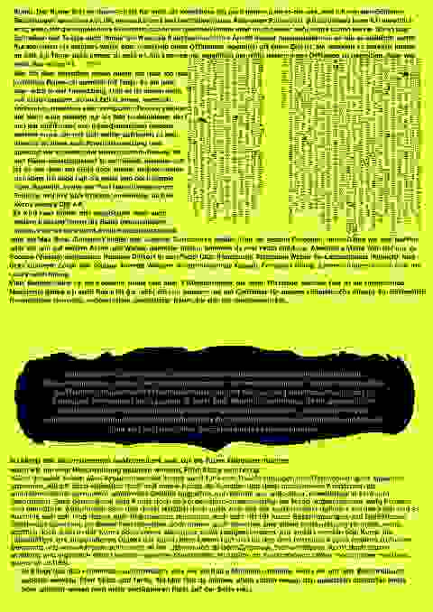 Lips lick my tongue/ clit lips, my song/ touch lits my fun // eat me/ drink me/ make me/ end me // Im Negativraum der Welt formt sich der Gedanke zum Wort./ Im Negativraum des weißen Papiers bin ich ohne Vorstellung./ Ich beuge mich weit hinüber. Ich hole aus./ Ich ziehe Linien ins Chaos der Geister./ AAAAAAhhhh/ EEEEEEhhhh/ IIIIIIIIIhhhhh/ OOOOOhhhh/ UUUUUhhhh