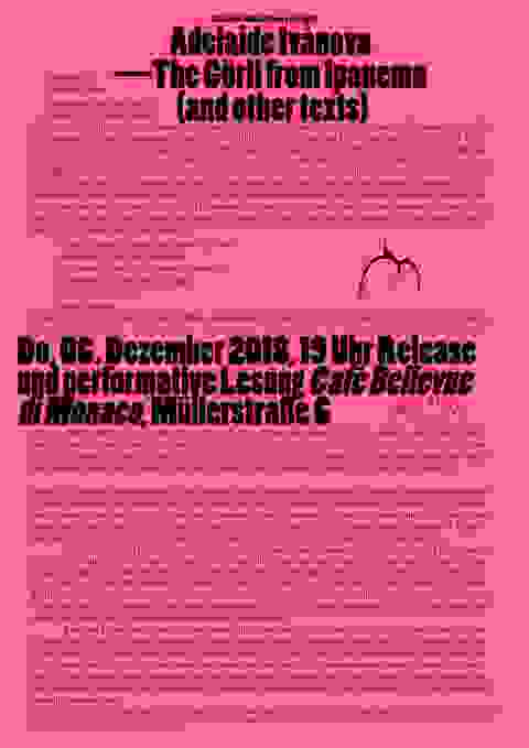 I made this poster edition for an exhibition with young Brazilian artists in Munich. It brings together Oswald de Andrade's Anthropophagian Manifesto (1928), contributions by Adelaide Ivánova, Riccardo Domeneck and quotations by Glauber Rocha and Clarice Lispector. It was edited in collaboration with Oliver Precht.