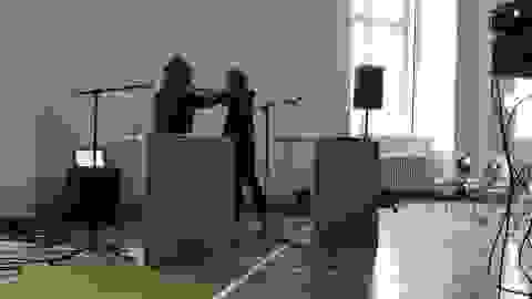 Performance Manifest. We are dependent, speech act with techno beat, duration about 20 min., HGB Leipzig 2018